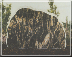 Fuldpoleret Vonga monument med sokkel, kanter poleret |